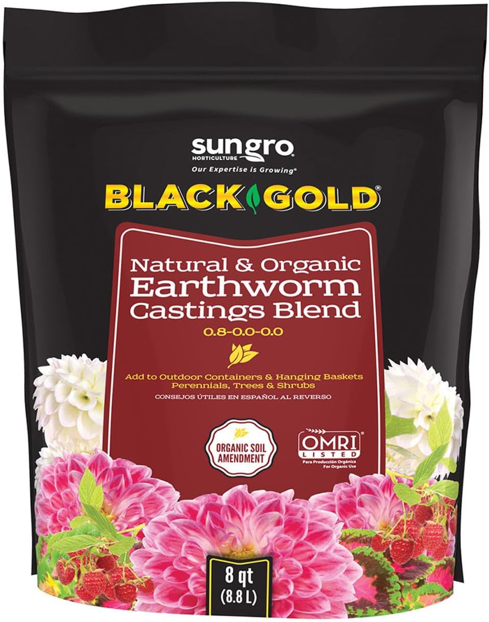 Uncle Jim’s Black Gold Worm Castings is an OMRI-listed, 4-pound bag of pure vermicompost. Its balanced NPK (~1.0-0.5-0.5) and microbial richness suit greens and root crops in zones 3-9, per The Spruce.