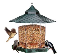 The five red ports attracted multiple birds, and the sturdy S-hook made hanging easy. Cleaning is straightforward with the wide-mouth bottle, though it’s heavy when full.